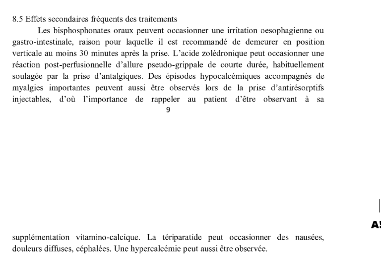 effet secondaires fréquents des biphosphanates?