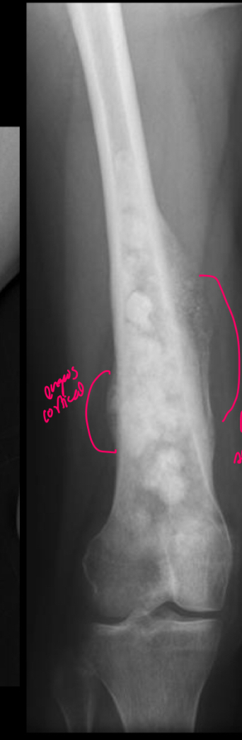 Mas frecuente en femur distal y tibia proximal