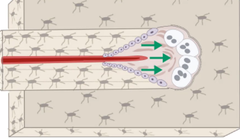 * Cellerna uppfattar det som vanlig remodellering (se kärlet som bara passerar frakturlinjen), BMU bara passerar