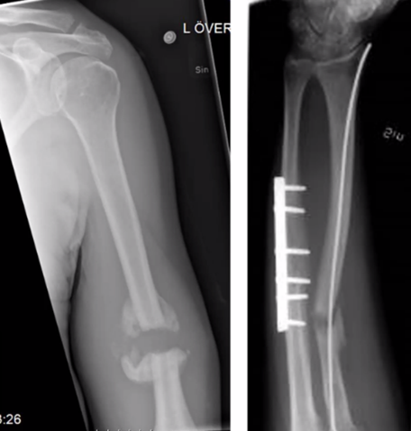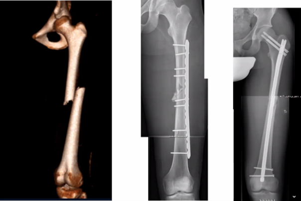 Märghålan inte så stor så man mäter med DT och märghålan mäts till 6 mm (för litet (8-9 mm som minst)) därför platta om vi opererar men, vad kan vi göra också?