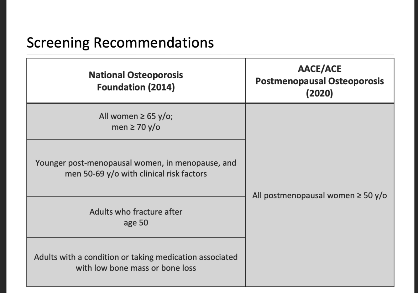 what are the 4 patients we recommend screening for