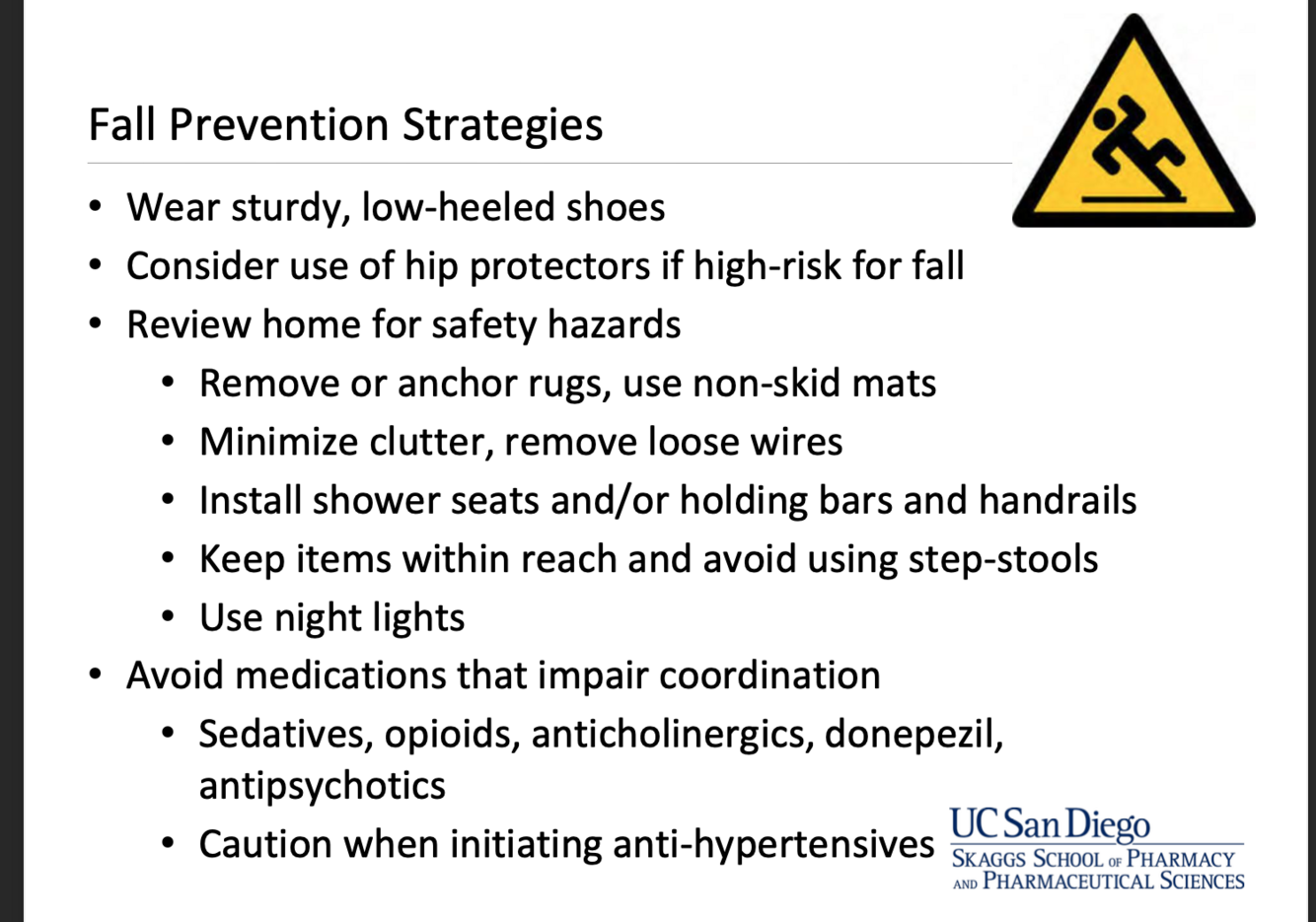 name 3 fall prevention stratagies