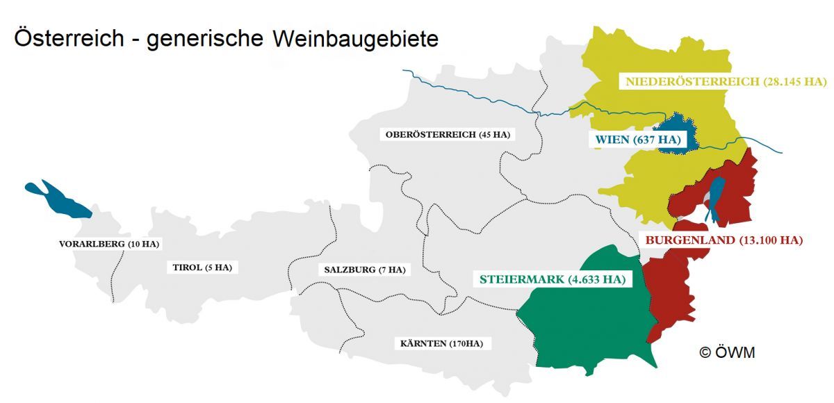 Niederösterreich, Burgenland, Steiermark og Wien.