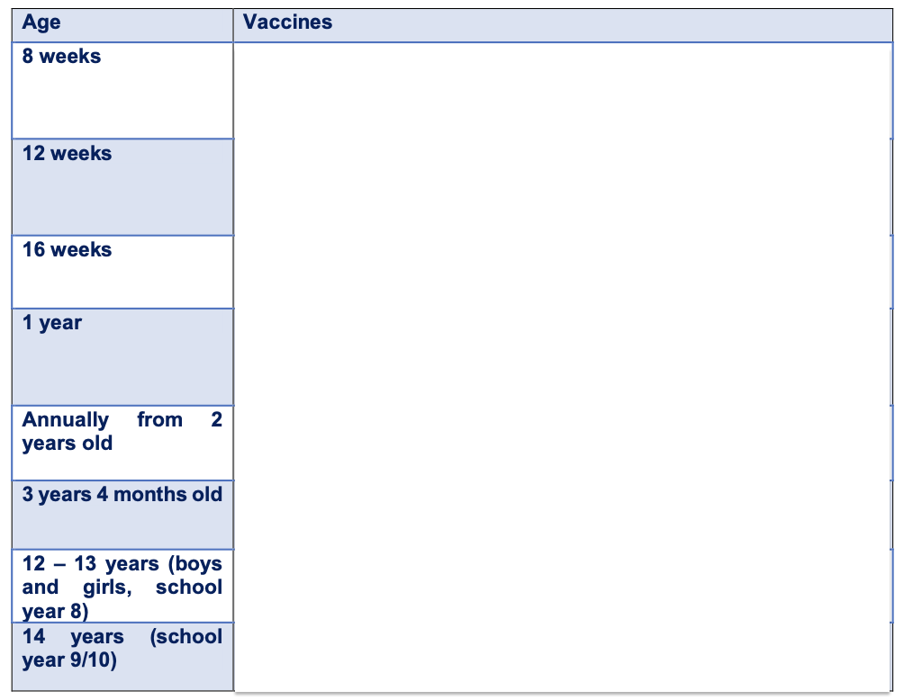 What additional vaccines are given to at risk groups?