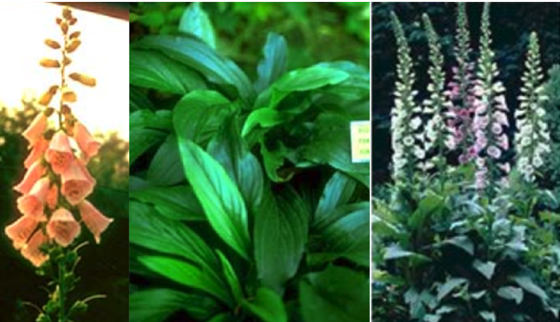 Foxglove (Digitalis purpurea)- Contains cardiac glycosides, which increase contractility and decrease