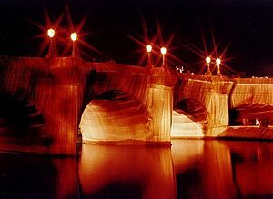 1935-2009 from Bulgaria y Morocco - A married couple who created environmental works of art - Known for the wrapping of the Reichstag in Berlin (1995-Berlin), y the Pont-Neuf bridge in Paris (pic); Valley Curtain (1972-Colorado); Umbrellas (1991-Japan); Running Fence in Sonoma CA; The Gates in Central Park