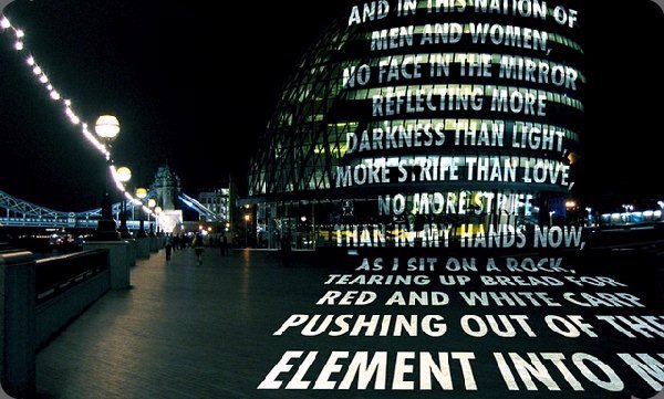 1950- American neo-conceptual artist from OH - Works feature the delivery of words y ideas in public spaces, such as billboards, projections on buildings, y illuminated LED displays - Under a Rock (1986); Please Change Beliefs (1995); For the City (2005)