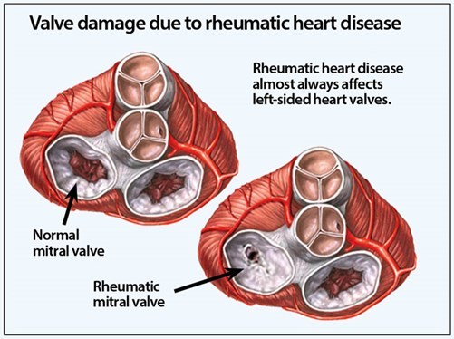 rheumatic valvular disease: mitral* (75 - 80%), aortic (30%)’ tricuspid and pulmonic (5%)
