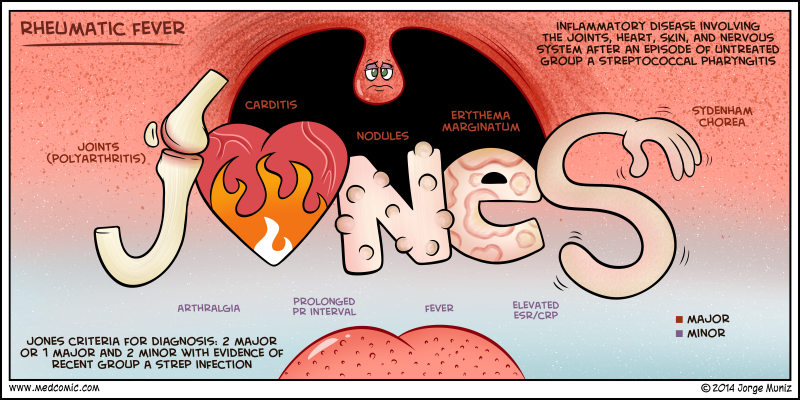 3. SYDENHAM’S CHOREA: (< 10%) “Saint Vitus Dance” may occur 1 - 8 months after initial infections. Manifestations include sudden involuntary, jerky, non-rhythmic, purposeless movements, especially involving the head/arms. Usually resolves sponaneously, MC in females