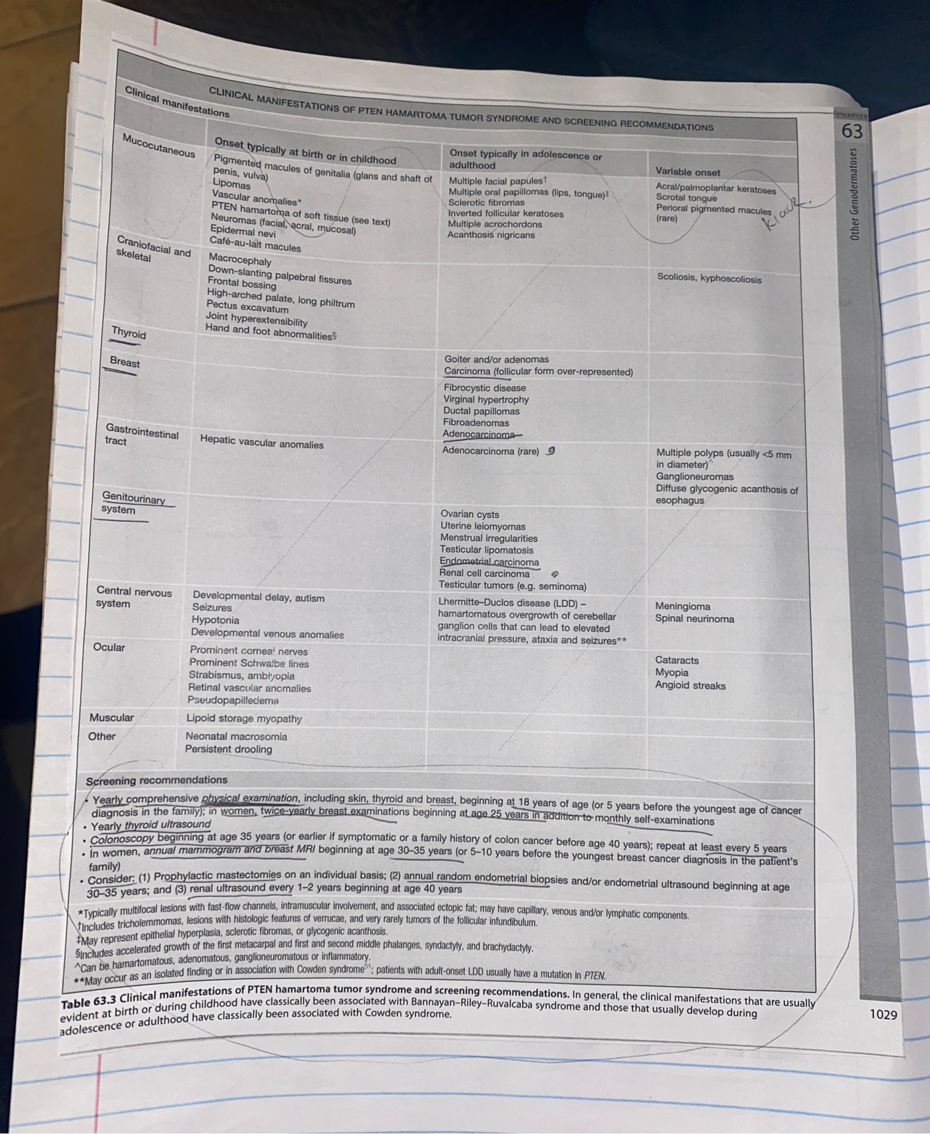 Clinical manifestations of PTEN hamartoma tumor syndrome and screening recommendations