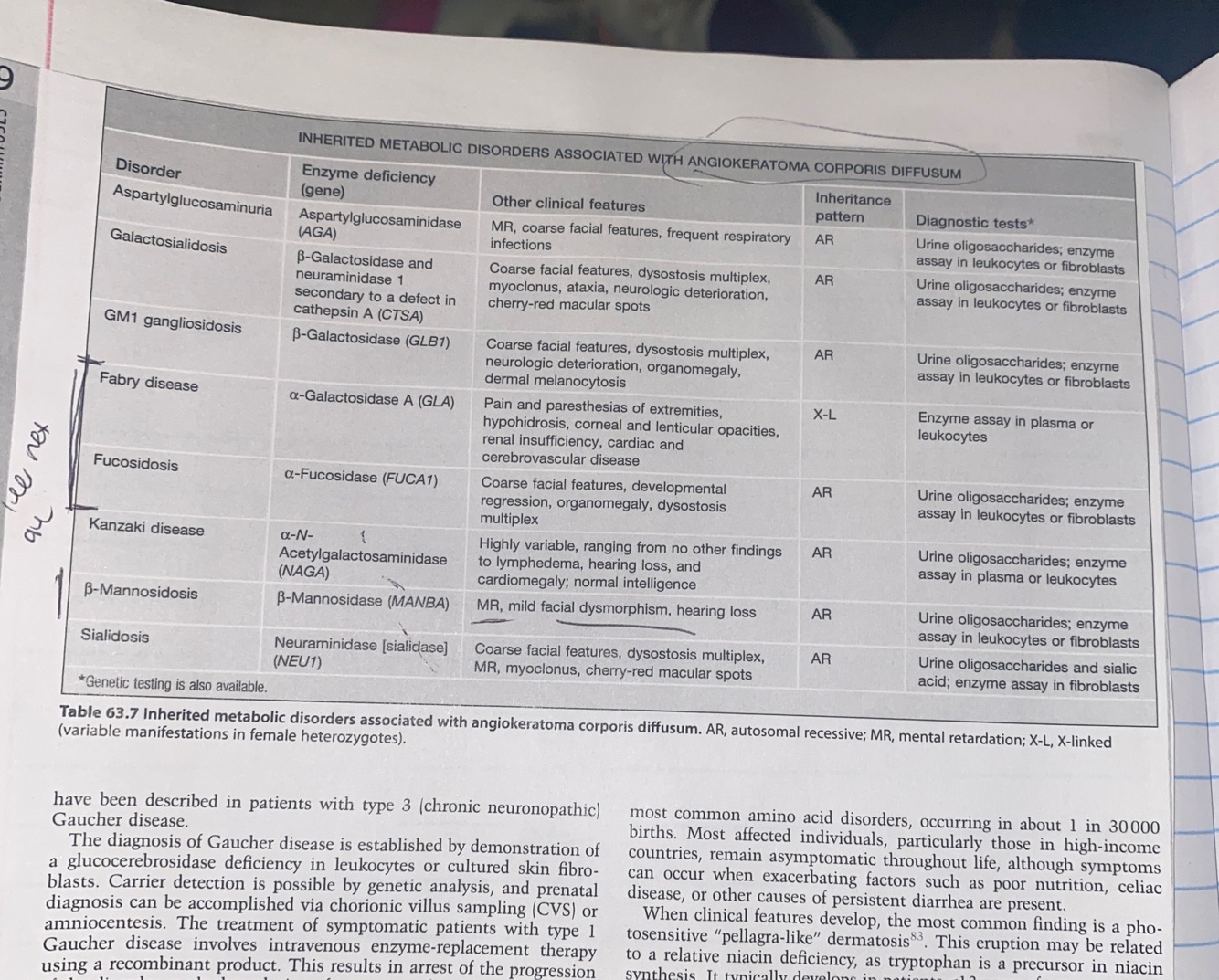 Inherited metabolic disorders associated with angiokeratoma corporis diffusum