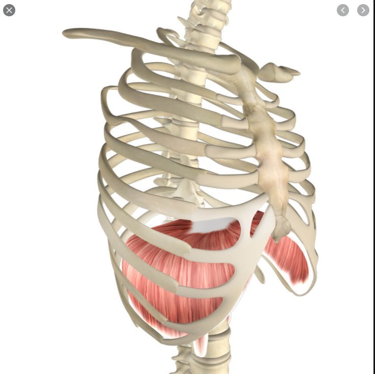 prime muscle of inspiration (flattens on contraction)