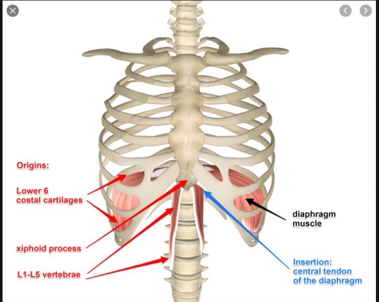 What are the origin points of the diaphragm?