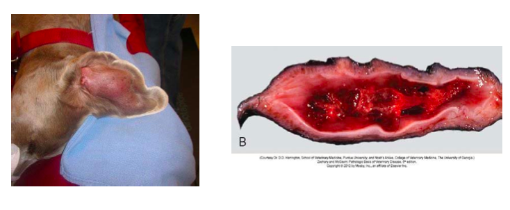 – Conformation – pendulous ears, stenotic acoustical meatus, hair