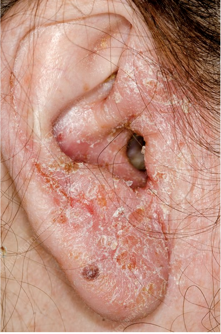 Which of the following skin conditions is most commonly associated with otitis externa?