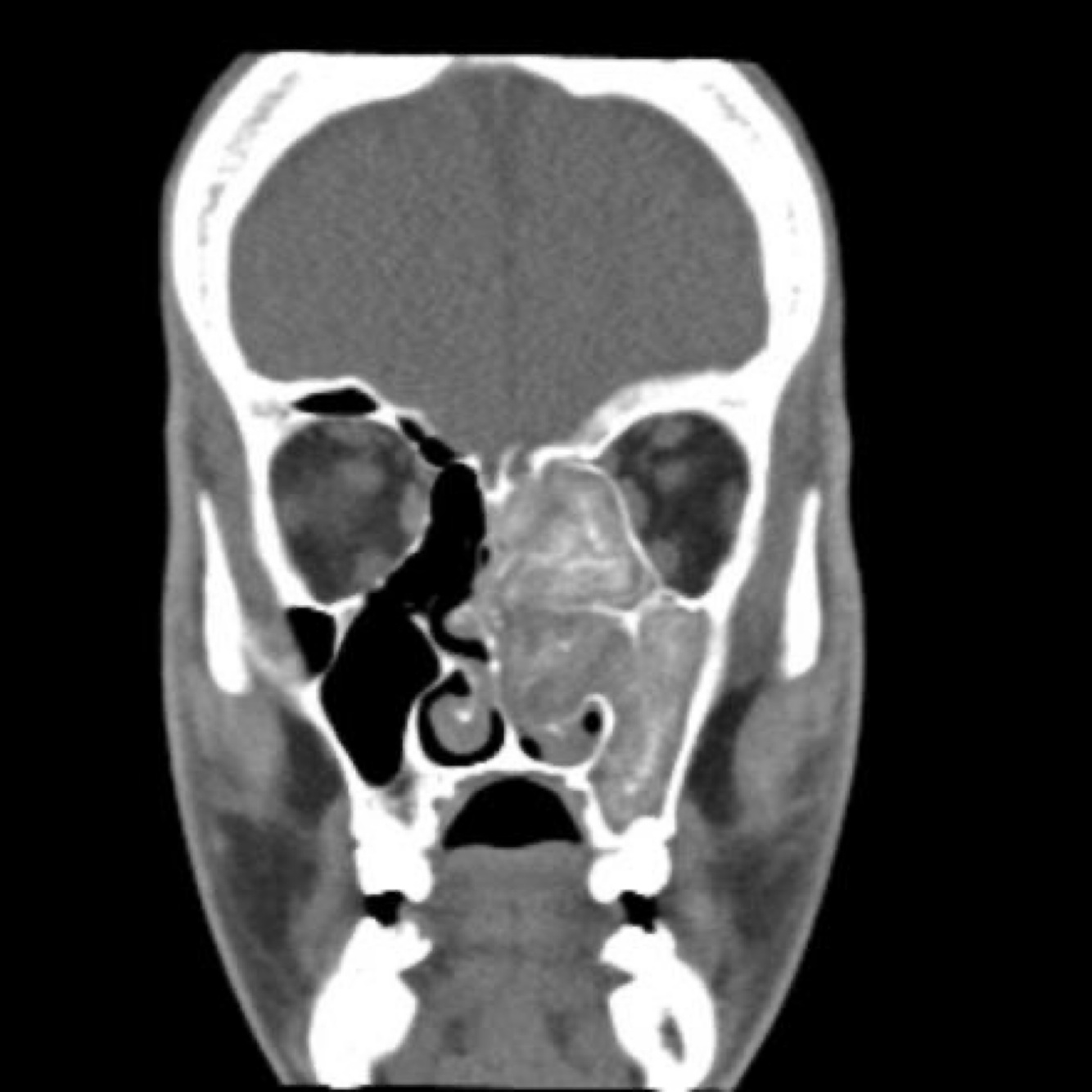 lateral nasal wall or extension into maxillary or ethmoid sinuses, and may reveal calcifications.