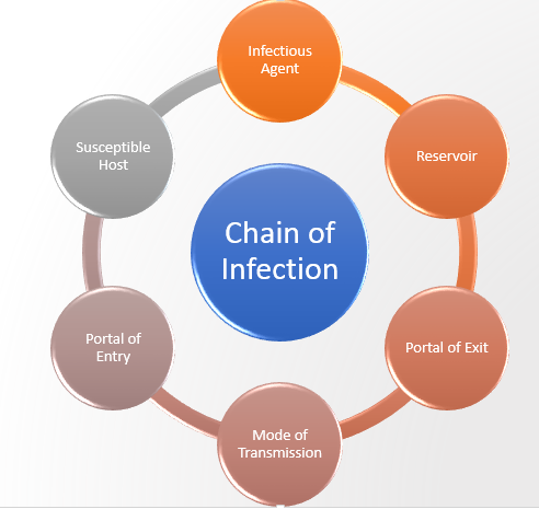 What are the steps in the chain of infection?