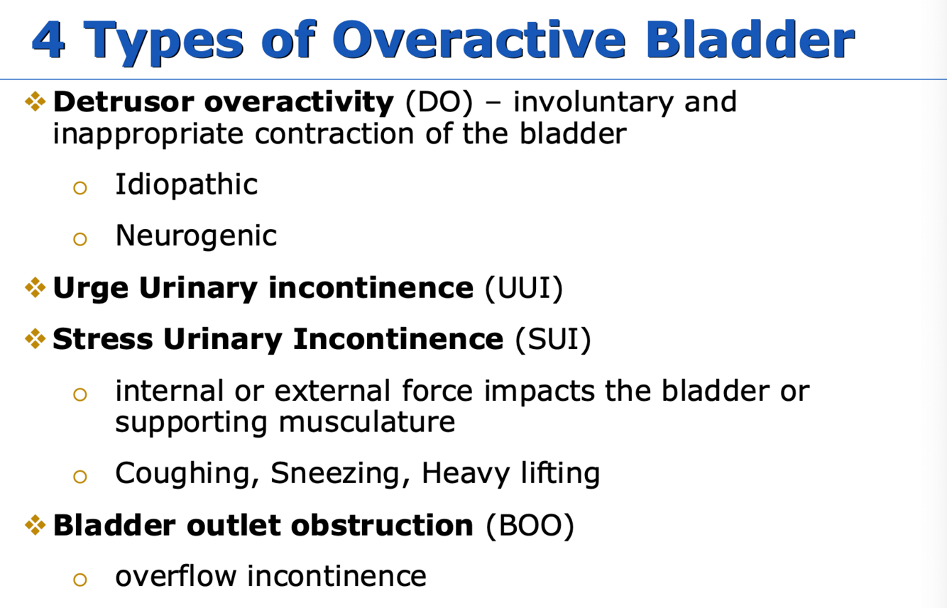 what are the 4 types of overactive bladder?