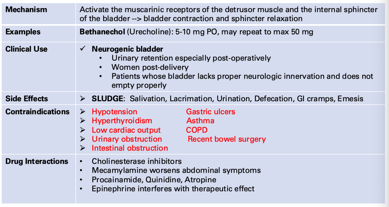 Cholinergics (Bethanechol)