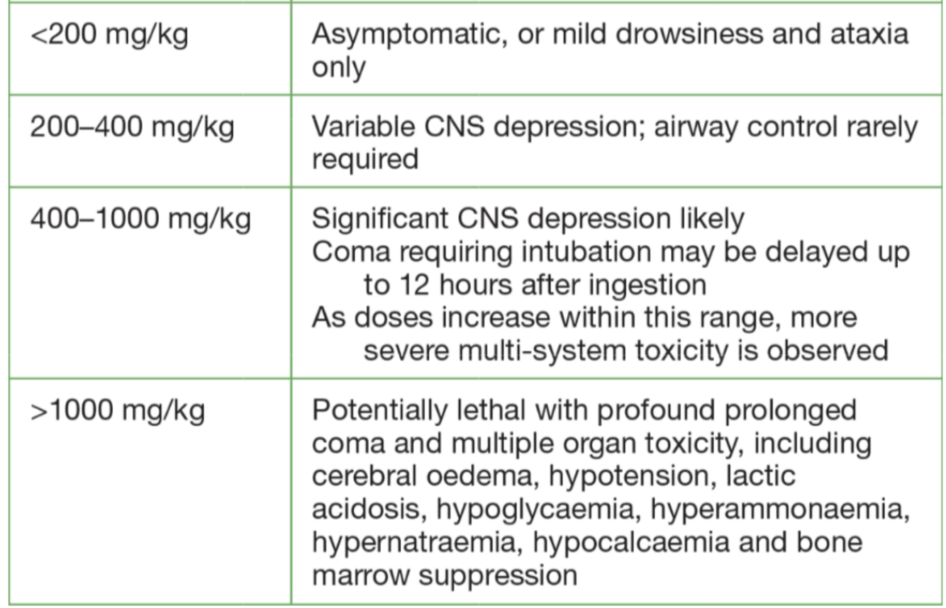 >1000mg/kg- Coma, multiorgan failure, cerebral oedema