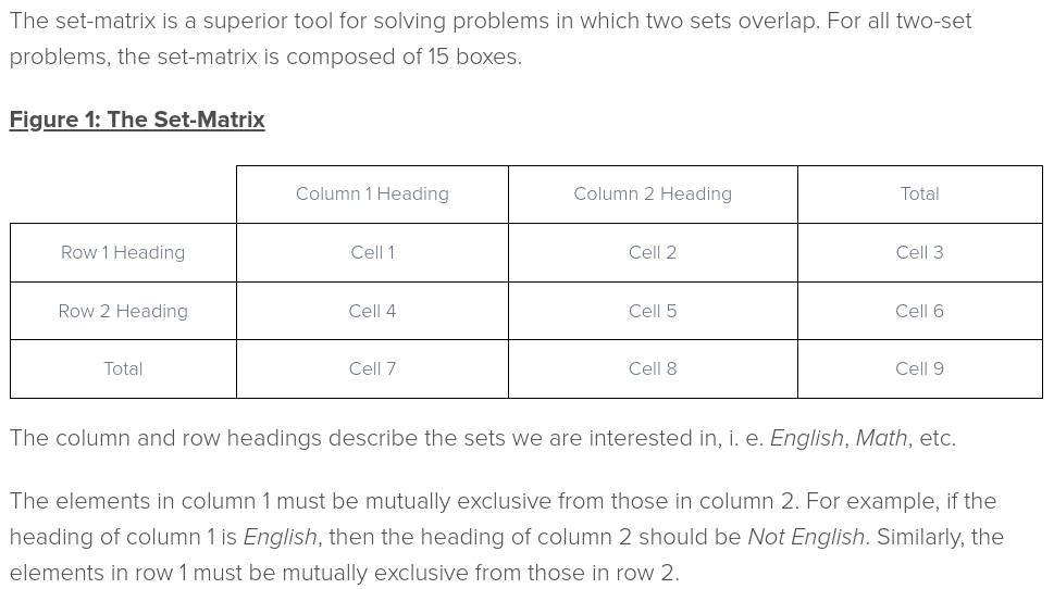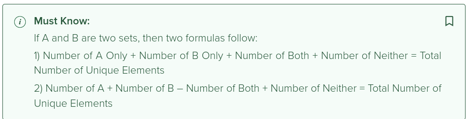 1) total number of unique elements in the set = (# only A) + (# only B) + (neither A or B) + (both A & B)