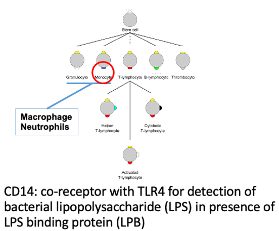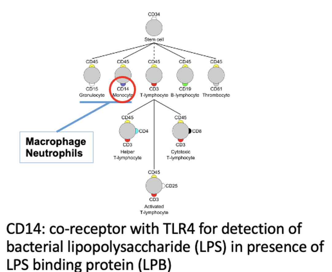 Co-receptor with TLR4 for detection of bacterial lipopolysaccharide (LPS) in presence of LPS binding protein (LPB)
