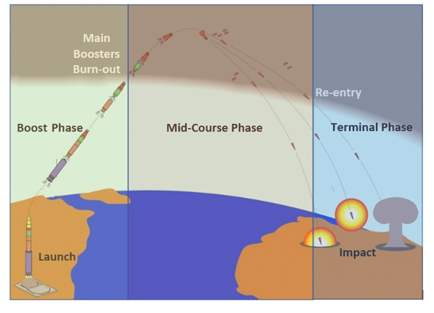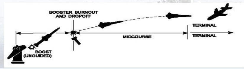 Midcourse: Guides missile near the target. Not all missiles have a midcourse phase.
