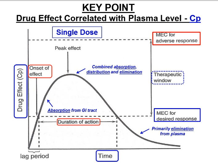 The amount of drug present in the plasma compartment (Cp). The effect of a drug that acts systemically is proportional to the level in the Cp.