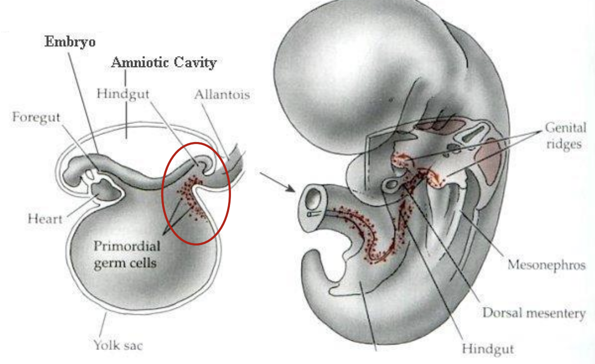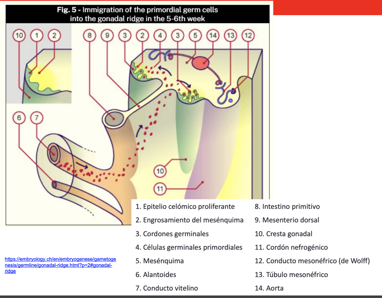Ovogonias inician meiosis I al 7° mes → ovocitos primarios