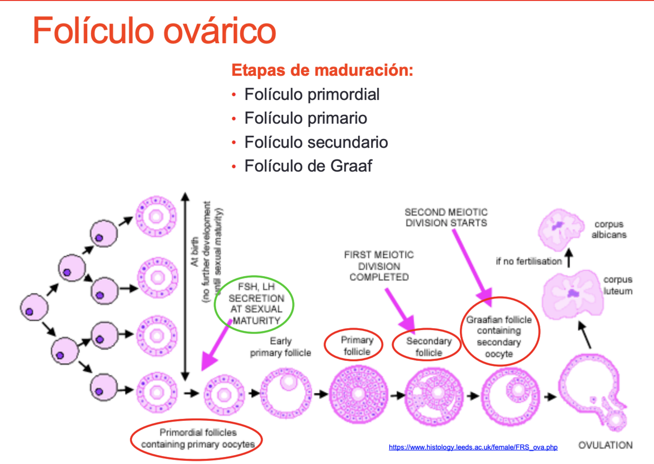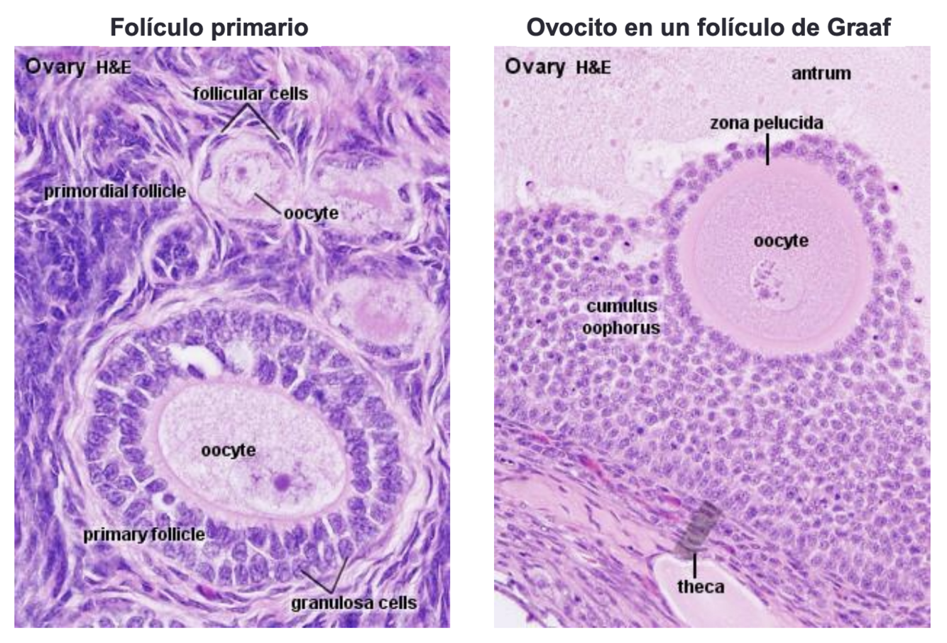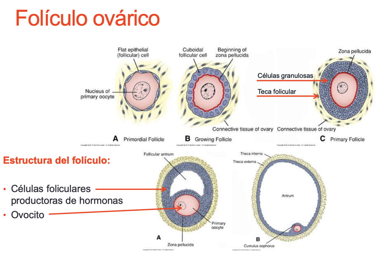 Folículo ovárico: ovocito + células epiteliales que lo rodean