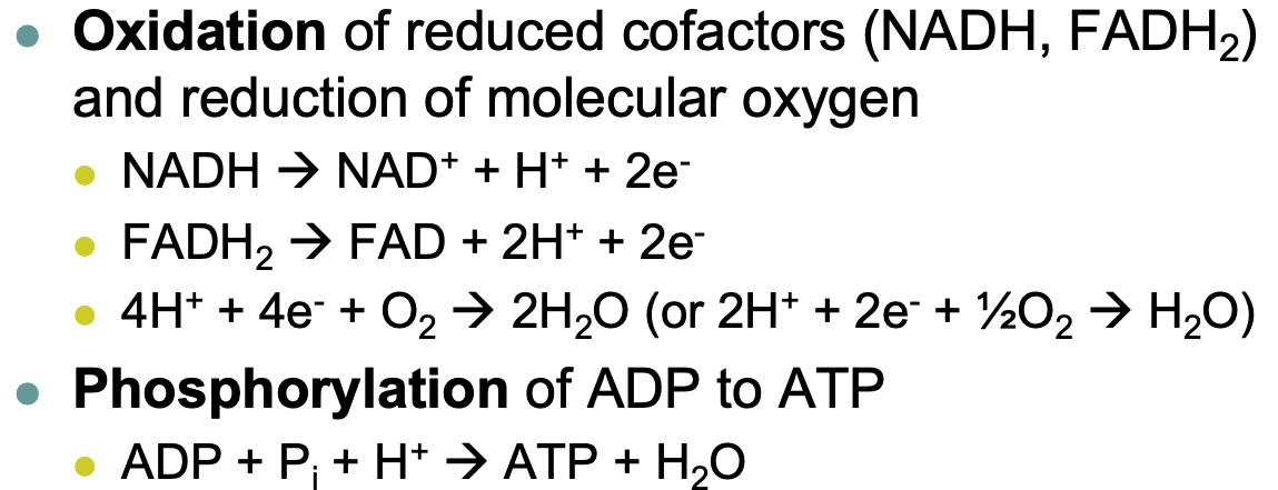 1) oxidation of reduced cofactors (NADH,FADH2)
