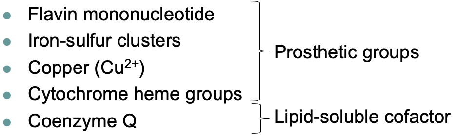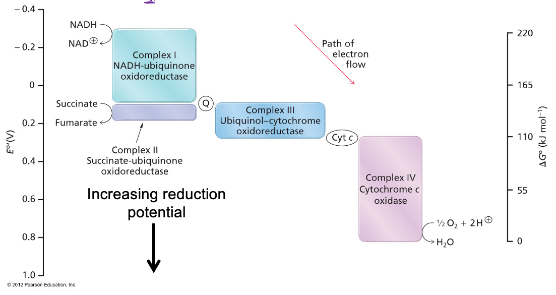 -each cofactor has a characteristic reduction potential/affinity for electrons