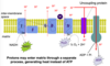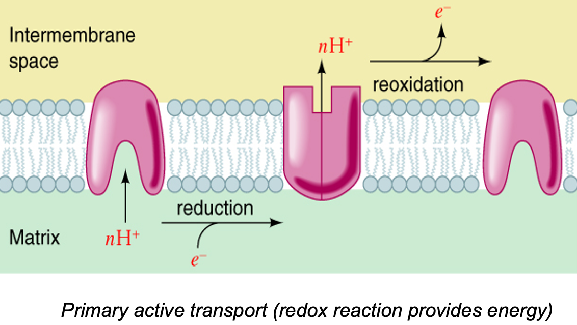 what is used to transport protons across the membrane in the ETC? what kind of transport is this?