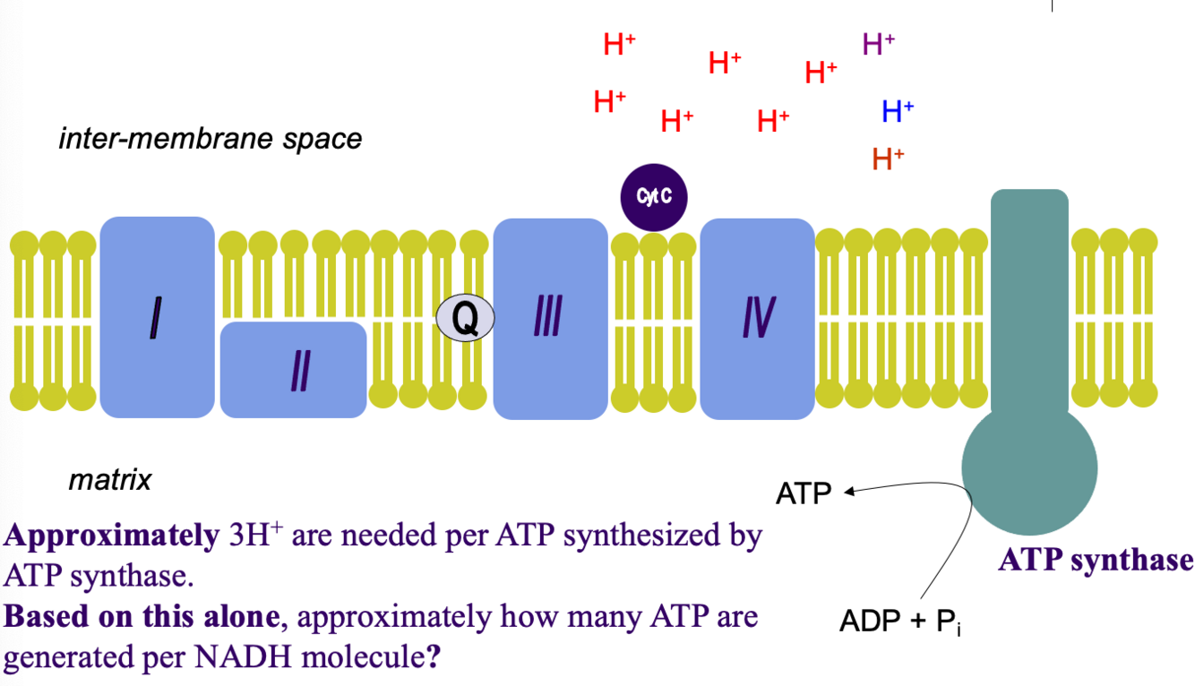 how many ATP are generated per NADH molecule in oxidative phosphorylation?