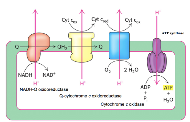 NADH-Q oxidorecutase (electron carriers in the respiratory chain)