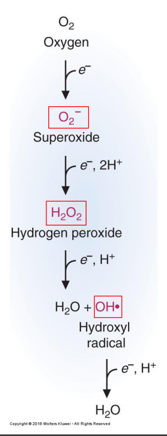 Describe the reduction of oxygen to water. Where do the electrons that contribute to this formation come from?