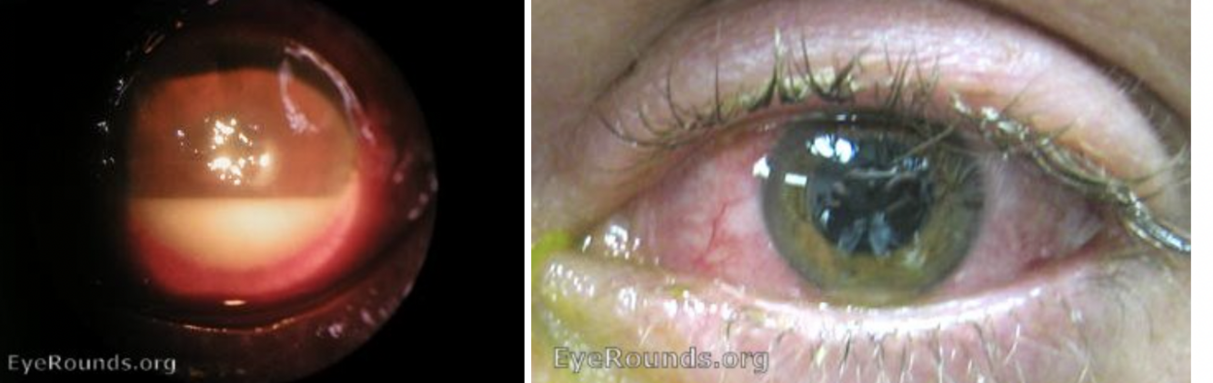 - Sees ifbm penetrerende øyeskader, men også ved inflammatoriske og infeksiøse tilstander, som keratit.