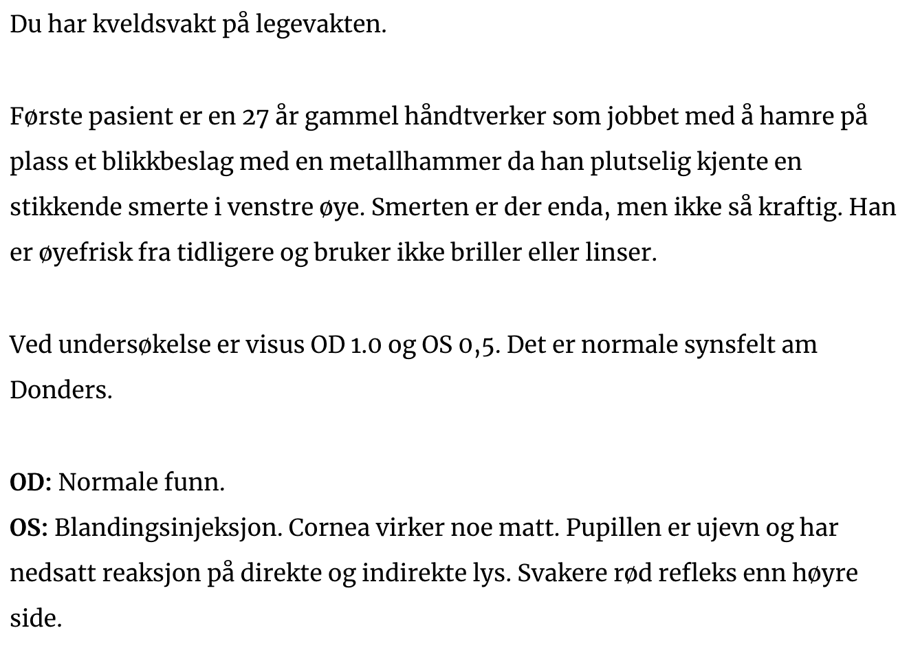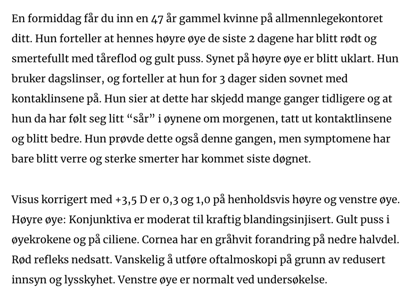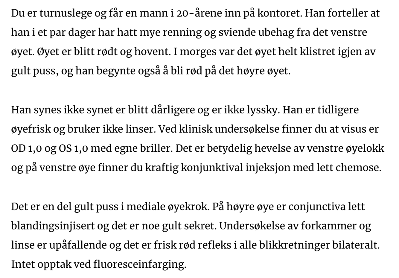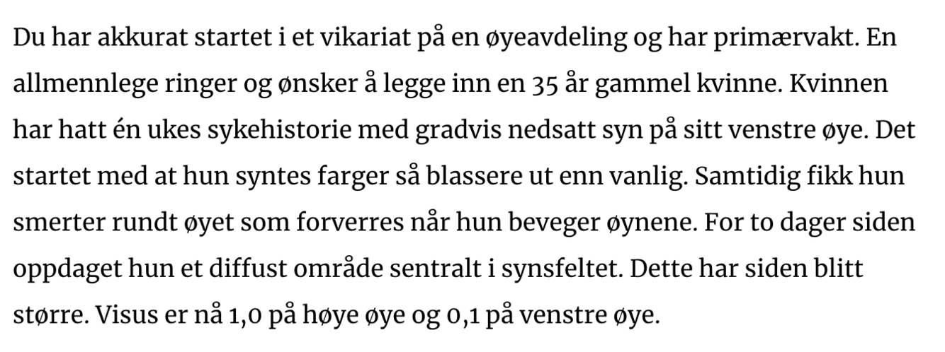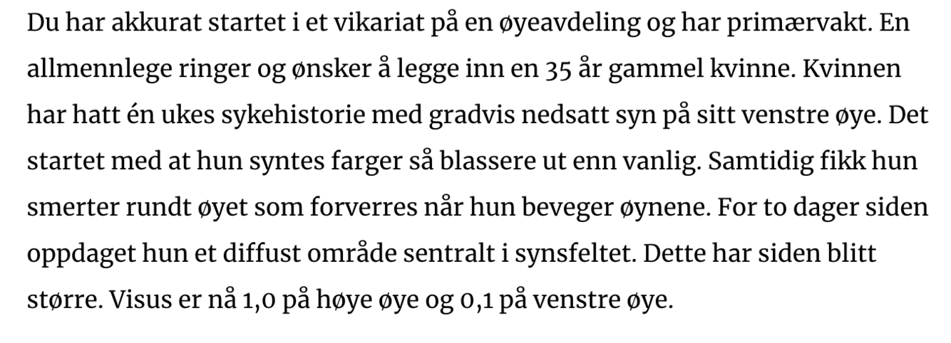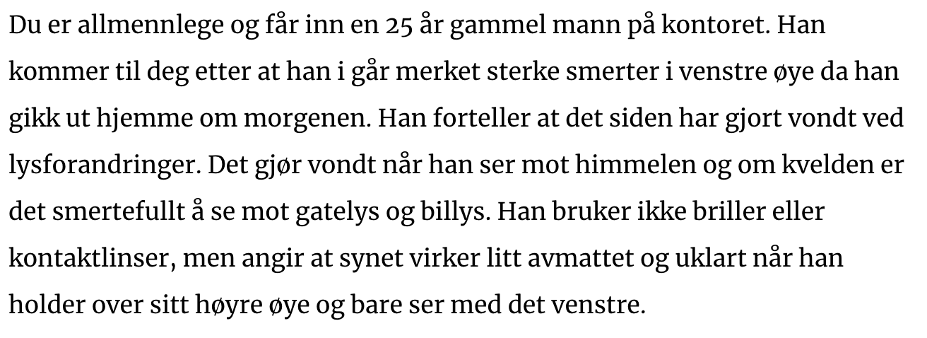 Skal denne pasienten undersøkes på øyeavdeling?