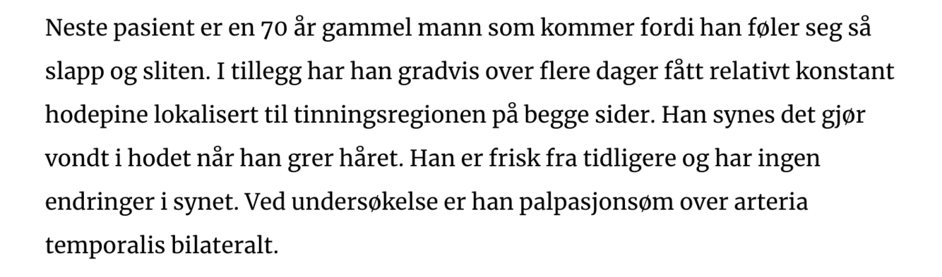 - Temporalisartritt - synstruende tilstand.