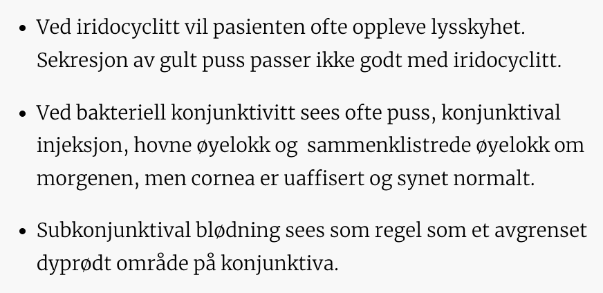 Iridocyklitt - ikke puss og pasienten er typisk lyssky