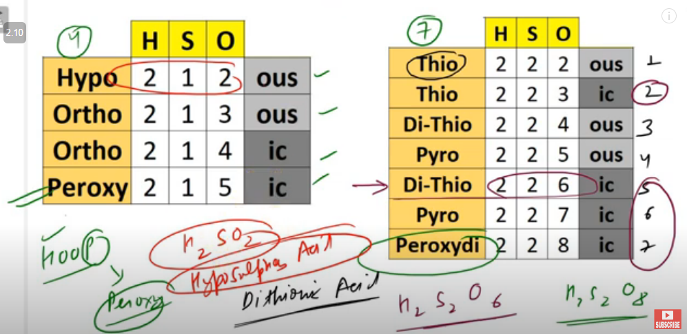 trick for sulphur oxacids names