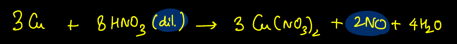 HNO3 with Cu (dilute)