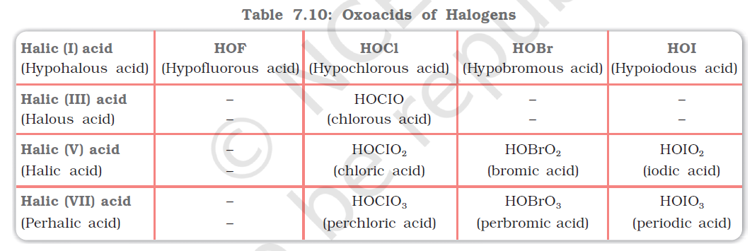 Oxoacids of Halogens table