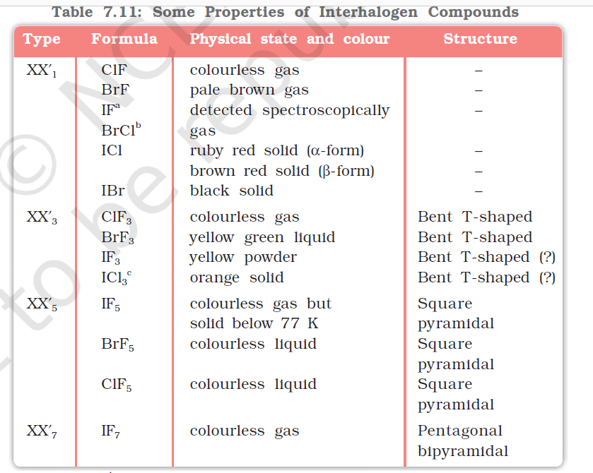 Interhalogen compounds list