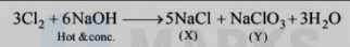 Cl2 with Hot conc NaOH forms