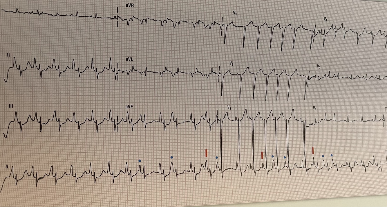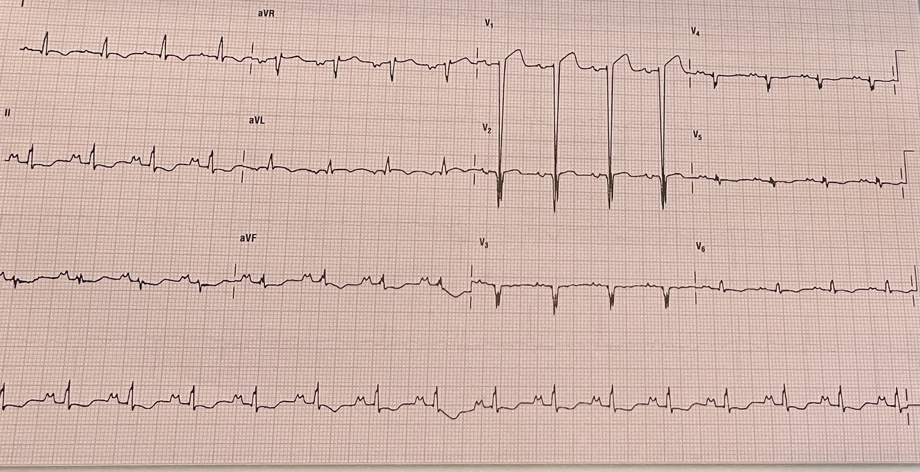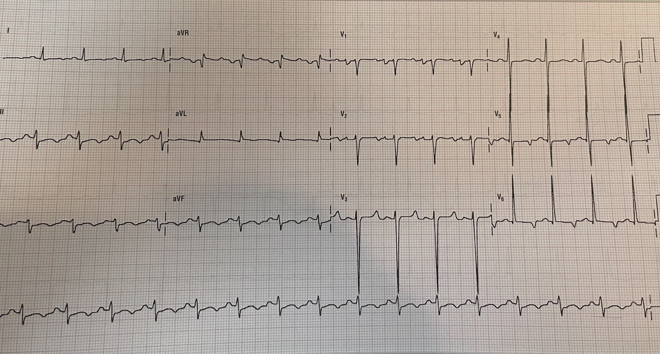 We also see that the third beat is a PAC (different morphology and PR interval)