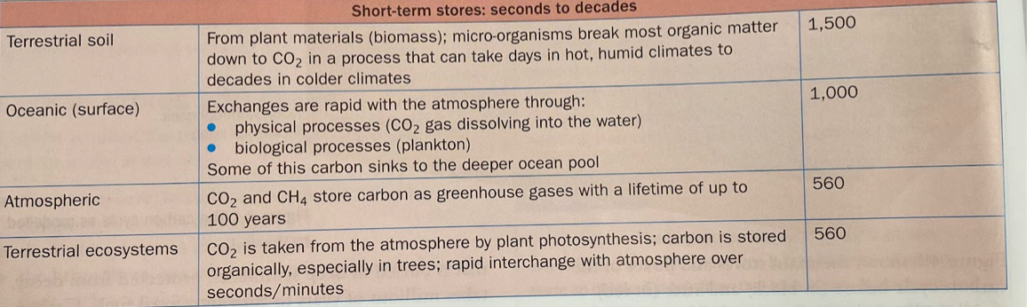 short term carbon stores