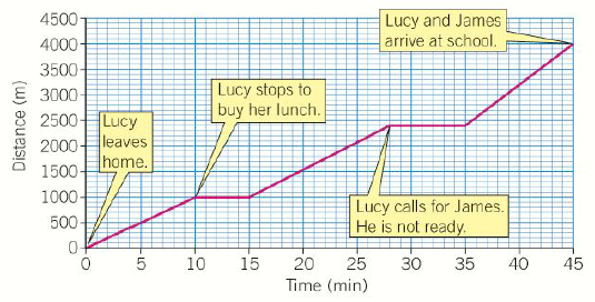 Use the distance time graph to calculate the average speed of Lucy over her whole journey?