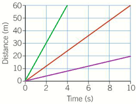 The graph shows part of a distance-time graph. Which line represents an object moving at a slow speed?