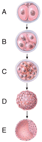 What stage happens 3–4 days after fertilization?